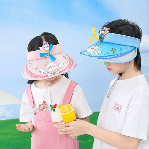 Cartoon Kidsren 'S Zomer Oplaadbare Zonnehoed Aanpasbaar Logo Lege Top Voor Jongens Meisjes Zonwering Ventilator Voor Casual Kinderen